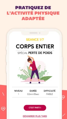 La motivación se mantiene intacta al ser testigo directo de su transformación. Con COMME J'AIME, documente visualmente la evolución de su silueta a través de fotografías seguras de frente y perfil, una herramienta poderosa que refuerza su compromiso. Más allá de los números, la aplicación le invita a abrazar una actividad física personalizada, con programas de ejercicio adaptados a su nivel y preferencias, presentados por nuestros expertos. Sesiones dinámicas y cortas, pensadas para integrarse sin esfuerzo en su día a día, que no solo le ayudarán a alcanzar sus objetivos físicos, sino que también mejorarán su estado de ánimo y energía. La progresión es recompensada, manteniendo su entusiasmo en cada paso.