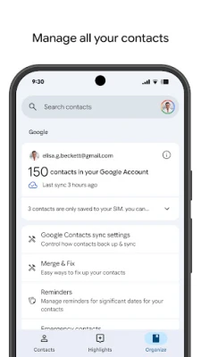 ¿Preocupado por perder tus contactos? Con tu gestor de contactos inteligente, tus datos más valiosos están siempre a salvo. Realiza copias de seguridad automáticas y seguras directamente en tu cuenta de Google, garantizando que cada número y dirección de correo electrónico esté protegido en la nube. Disfruta de la tranquilidad de saber que puedes acceder a toda tu agenda desde cualquier dispositivo con tu sesión iniciada, incluso al estrenar un nuevo teléfono. Además, si borras algo por error, tienes hasta 30 días para recuperar esos contactos eliminados con facilidad, sin estrés ni complicaciones.