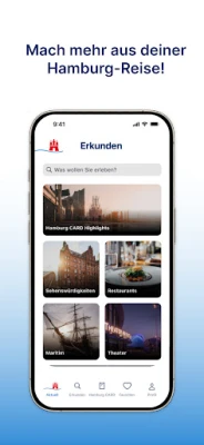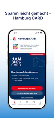 Maximice su aventura con la Hamburg CARD, convenientemente integrada en la aplicación. Manténgase al día sobre descuentos y ofertas actuales para icónicas experiencias como los recorridos por el puerto y el Alster, visitas a museos o cenas en restaurantes selectos. Además, la Hamburg CARD funciona como su billete ilimitado para toda la red de transporte público de Hamburgo, permitiéndole moverse sin esfuerzo por la ciudad. Adquiera su Hamburg CARD directamente en la aplicación y benefíciese de su flexibilidad, con ahorros de hasta un 50% con nuestros socios.