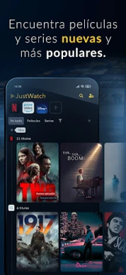 La potencia de JustWatch reside en su motor de búsqueda inteligente, que alberga más de 20.000 títulos, cada uno con tráilers, sinopsis, información del elenco y valoraciones, ayudándote a elegir con confianza. Personaliza tu aventura de visionado con la Watchbar, seleccionando tus plataformas predilectas y filtrando por géneros específicos o años de lanzamiento para refinar tu búsqueda. Mantente al día con las "Novedades" diarias, que te informan sobre los últimos estrenos y adiciones a los catálogos de tus servicios, asegurándote de que nunca te pierdas los títulos más relevantes del momento.